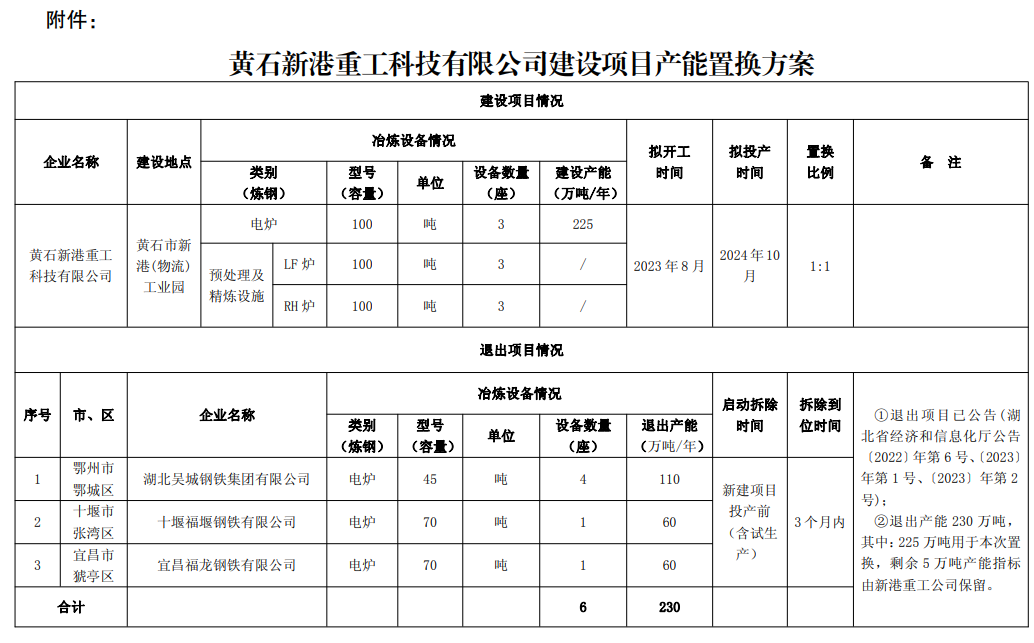 附件:黃石新港重工科技有限公司建設(shè)項目產(chǎn)能置換方案