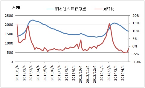 據(jù)中國指數(shù)研究院數(shù)據(jù)顯示,2014年4月22個重點城市新房成交量環(huán)比下降2%,同比下降20%,1-4月累計同比下降22%。統(tǒng)計的22個重點城市中,除上海、武漢、其他城市庫存均有所上升。2014年4月百城百城住宅價格同比2013年4月上漲9.06%,為2013年10月以來首次低于10%,漲幅連續(xù)第4個月縮小,顯示購房者觀望情緒加重,房地產市場需求走弱的態(tài)勢還在延續(xù),對國內鋼材市場產生較大的負面影響。