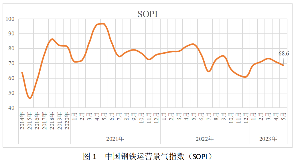 2023年5月份中國(guó)鋼鐵運(yùn)營(yíng)景氣指數(shù)(SOPI)下降至68.6