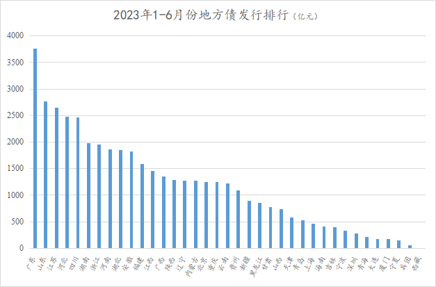 據(jù)新華財(cái)經(jīng)統(tǒng)計(jì),截至6月30日,36個(gè)省區(qū)市加上建設(shè)兵團(tuán)共發(fā)行地方債43681.05億元,同比減少8820.52億元;今年上半年各地到期(提前)償還16334.97億元,同比增加6636.23億元。從地區(qū)來看,廣東、山東和江蘇三省發(fā)行居前,上半年分別發(fā)行3760億元、2769億元和2649億元,數(shù)據(jù)顯示西藏1-6月未發(fā)行債券。
