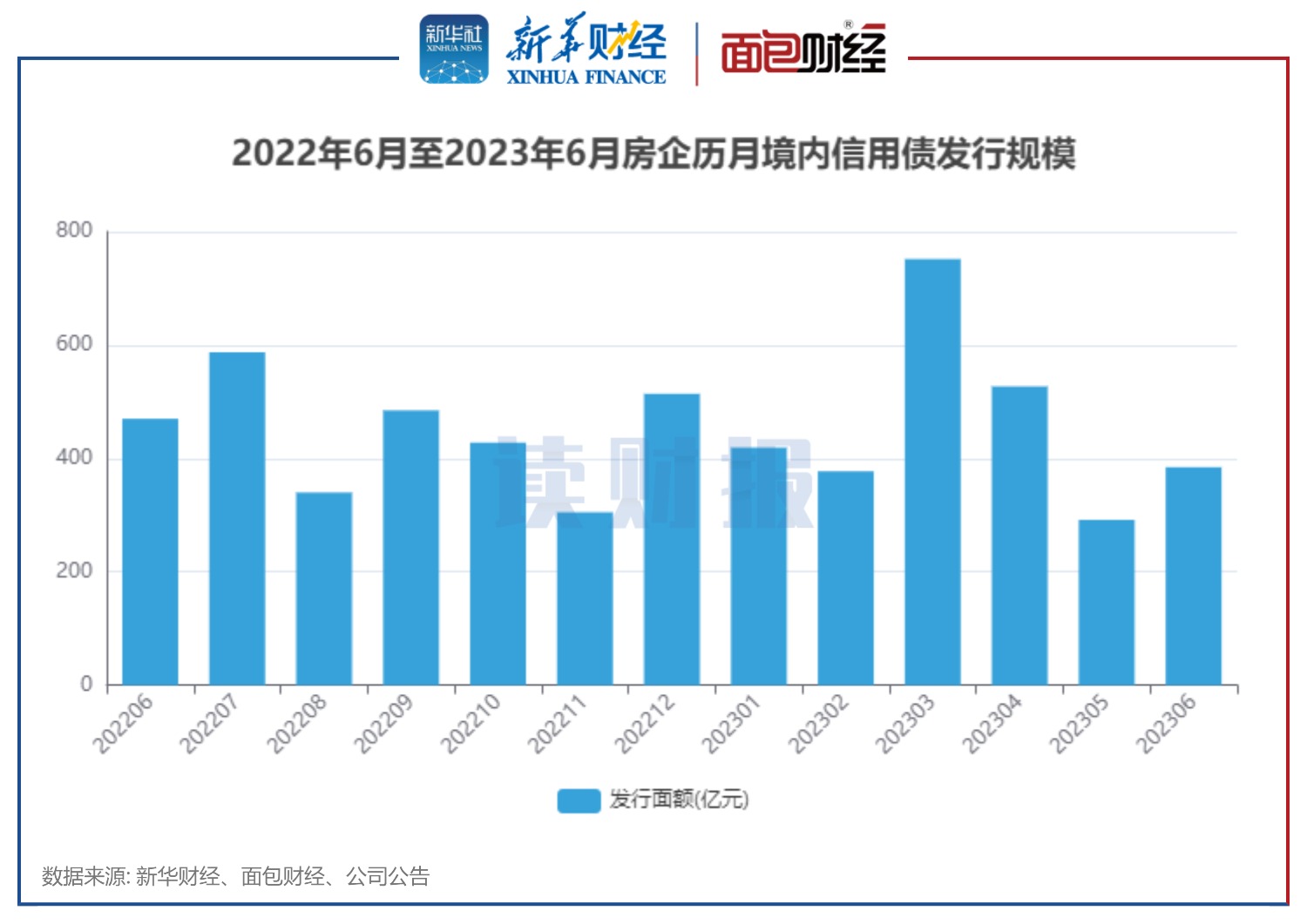 圖1:2022年6月至2023年6月房企歷月境內(nèi)信用債發(fā)行規(guī)模