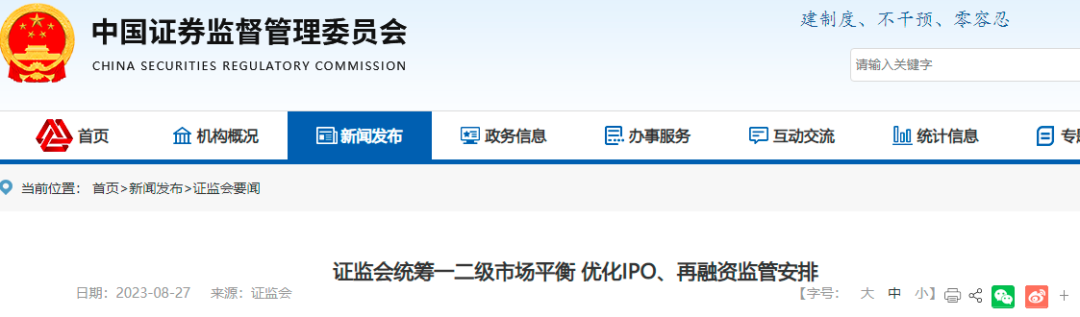 證監(jiān)會(huì)統(tǒng)籌一二級(jí)市場平衡 優(yōu)化IPO、再融資監(jiān)管安排