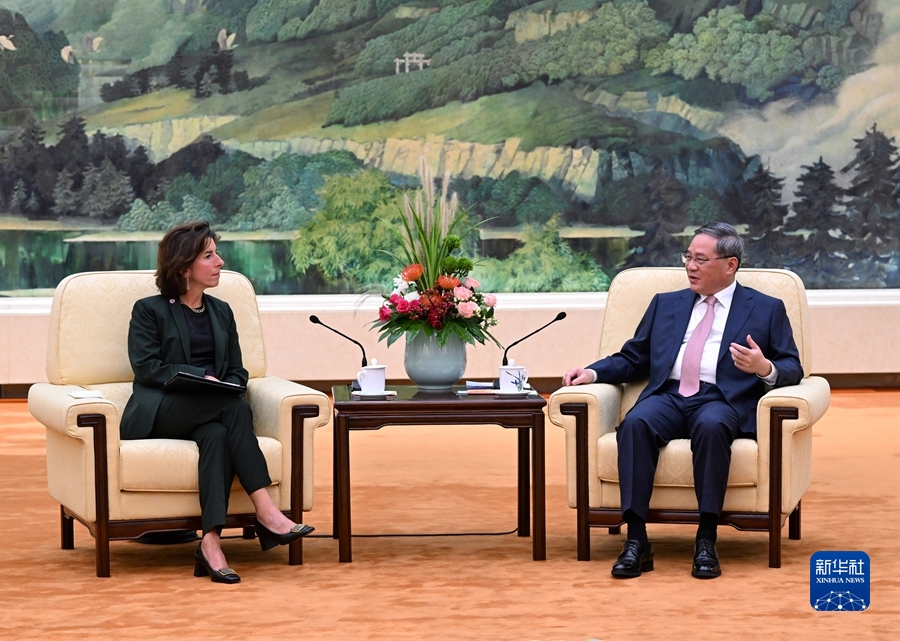 8月29日下午,國務(wù)院總理李強(qiáng)在北京人民大會(huì)堂會(huì)見美國商務(wù)部長雷蒙多。新華社記者 饒愛民 攝