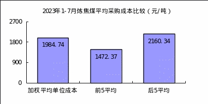 1—7月對標企業(yè)煉焦煤平均采購成本最低的前5家企業(yè)折算成干基的加權(quán)平均采購成本為1472.37元/噸,比對標企業(yè)平均采購成本低512.38元/噸,低于平均采購成本25.82%;而采購成本最高的5家企業(yè)的加權(quán)平均采購成本為2160.34元/噸,比對標企業(yè)平均采購成本高175.60元/噸,高于平均采購成本8.85%。