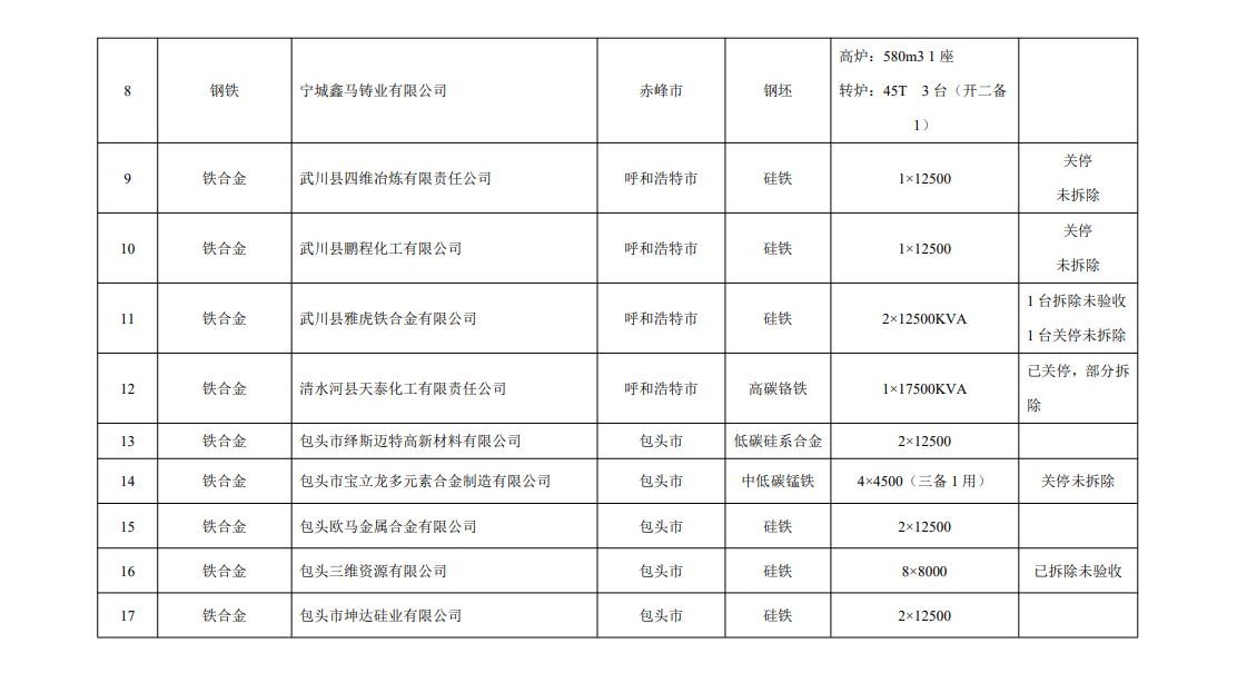 按照內(nèi)蒙古自治區(qū)發(fā)展改革委、工信廳《關(guān)于調(diào)整部分行業(yè)電價政策和電力行業(yè)市場交易政策的通知》(內(nèi)發(fā)改價費字〔2021〕115號》)、《關(guān)于進一步明確差別電價、階梯電價執(zhí)行時間的通知》(內(nèi)發(fā)改價費字〔2022〕2019號)等有關(guān)要求,各盟市對照《產(chǎn)業(yè)結(jié)構(gòu)調(diào)整指導目錄(2019本)》摸底排查鋼鐵、焦炭、鐵合金、電石等限制類(裝備)企業(yè),上報了2023年度限制類(裝備)企業(yè)執(zhí)行差別電價的名單?,F(xiàn)對名單予以公示,公示期自發(fā)布之日起5個工作日,請社會公眾進行監(jiān)督。公示期間,如有異議,請及時向自治區(qū)工業(yè)和信息化廳書面反映情況。
