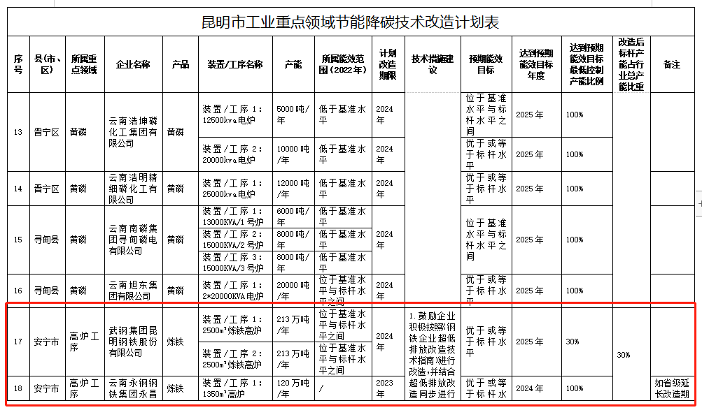 昆明市工業(yè)重點(diǎn)領(lǐng)域節(jié)能降碳技術(shù)改造實(shí)施方案(公示稿)