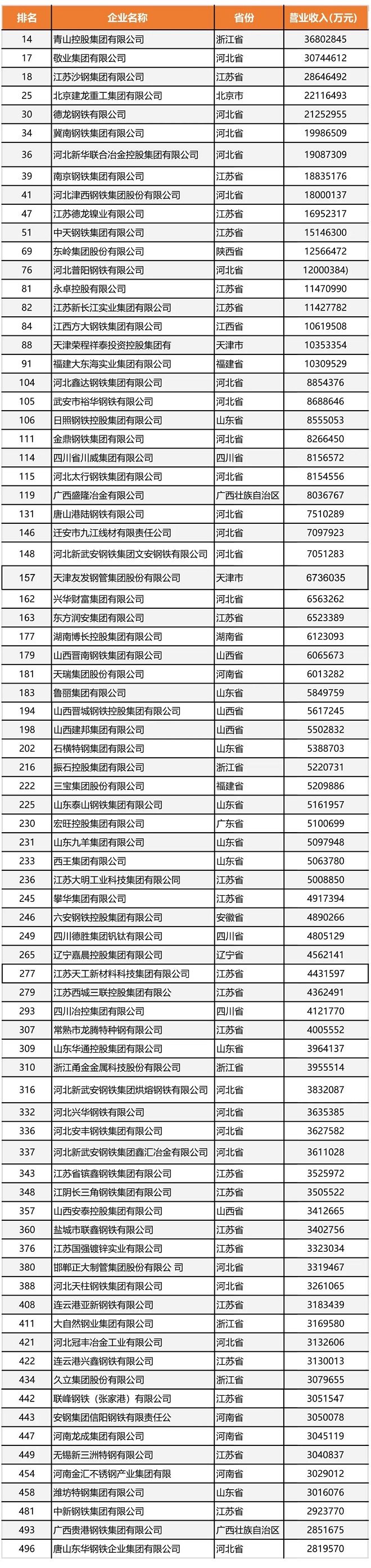 2023中國民營企業(yè)500強(qiáng)出爐 80家鋼鐵企業(yè)上榜