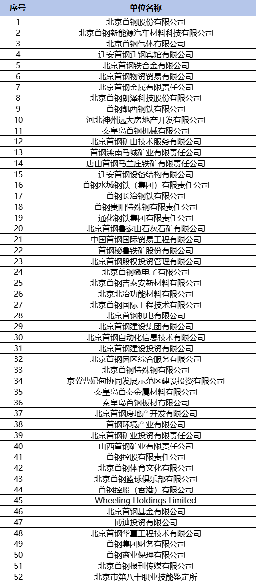 近期,首鋼集團官網(wǎng)發(fā)布了旗下52家企業(yè)名單。具體內(nèi)容如下:
