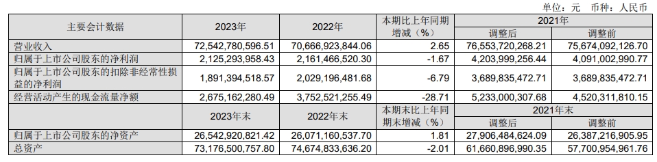南鋼股份披露年度報告,2023年公司實(shí)現(xiàn)營業(yè)收入725.43億元,同比增長2.65%;歸屬于上市公司股東的凈利潤21.25億元,同比下降1.67%;基本每股收益0.34元。公司擬向全體股東每10股派發(fā)現(xiàn)金紅利2.5元(含稅)。