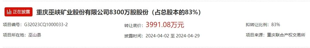 項(xiàng)目名稱:重慶巫峽礦業(yè)股份有限公司8300萬股股份(占總股本的83%)