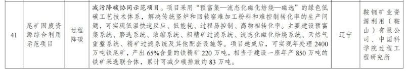 鋼鐵相關(guān)末端減碳項(xiàng)目: