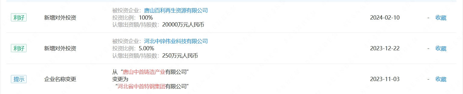 據(jù)企查查消息顯示,河北省中首特鋼集團有限公司投資成立新公司,投資比例為100%,認繳出資額為20000萬人民幣。在此前,企業(yè)名稱發(fā)生了變更,從“唐山中首鑄造產(chǎn)業(yè)有限公司”變更為“河北省中首特鋼集團有限公司”,具體情況如下: