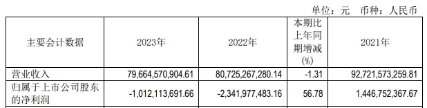 柳鋼股份發(fā)布2023年年度報(bào)告,報(bào)告期公司營業(yè)收入796.65億元,同比下降1.31%;歸屬于上市公司股東的凈虧損10.12億元。