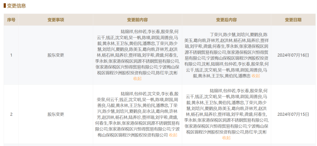 核心提示:據(jù)國家企業(yè)信用信息公示系統(tǒng)(江蘇)一地方頻道顯示,2024年7月15日、7月16日,江蘇沙鋼集團(tuán)有限公司發(fā)生了兩次股東變更。具體情