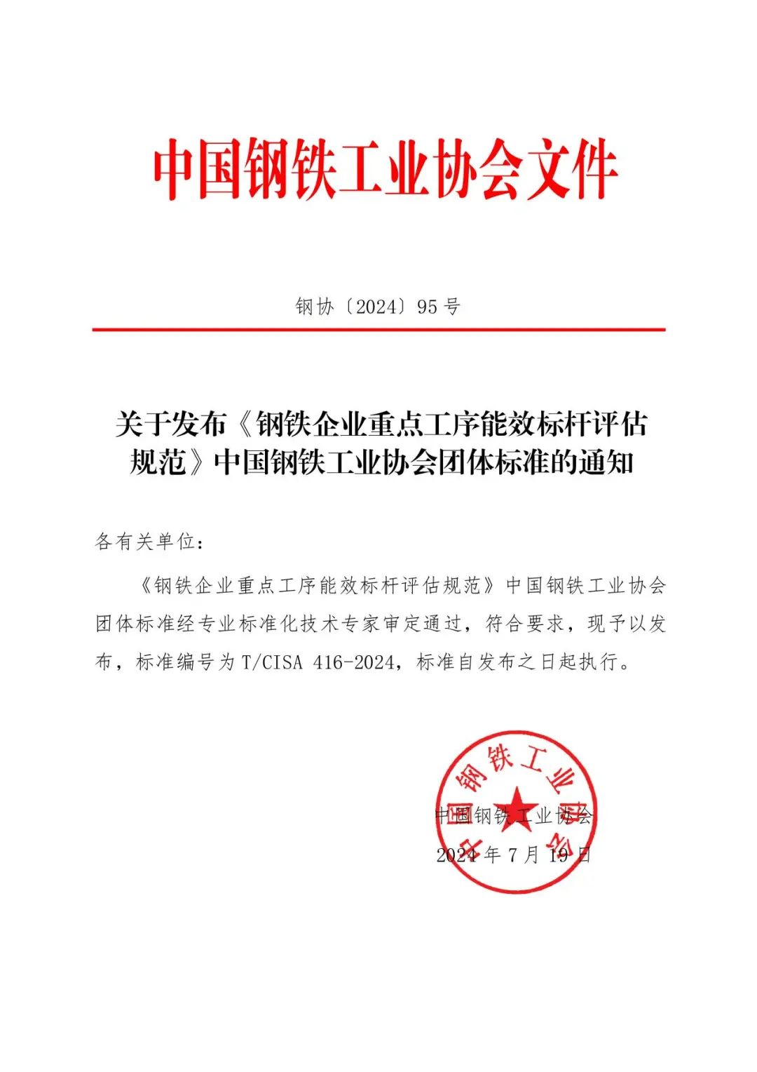 近日,中國(guó)鋼鐵工業(yè)協(xié)會(huì)印發(fā)《關(guān)于發(fā)布<鋼鐵企業(yè)重點(diǎn)工序能效標(biāo)桿評(píng)估規(guī)范>中國(guó)鋼鐵工業(yè)協(xié)會(huì)團(tuán)體標(biāo)準(zhǔn)的通知》(鋼協(xié)〔2024〕95號(hào))。