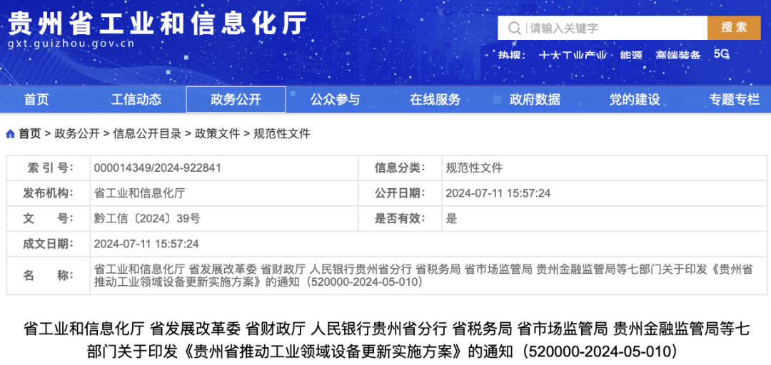 《貴州省推動工業(yè)領域設備更新實施方案》