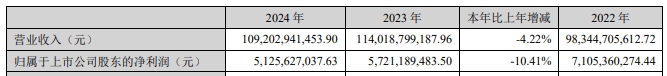 中信特鋼公告稱,公司2024年營業(yè)收入為1092.03億元,同比下降4.22%;實現(xiàn)凈利潤為51.26億元,同比下降10.41%。