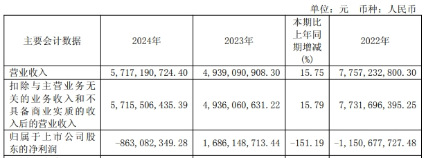西寧特鋼公布2024年年報(bào),公司營(yíng)業(yè)收入為57.2億元,同比上升15.8%;凈利潤(rùn)虧損8.63億元,同比下降151.2%。