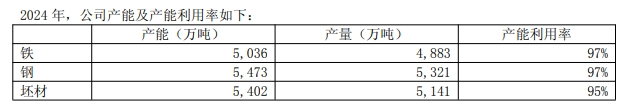 2025年,公司計(jì)劃產(chǎn)鐵4879萬(wàn)噸、產(chǎn)鋼5261萬(wàn)噸、銷售商品坯材5224萬(wàn)噸,營(yíng)業(yè)總收入3120億元、營(yíng)業(yè)成本2909億元。