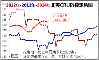美洲鋼材市場:穩(wěn)中趨弱。該地區(qū)182.1點(diǎn)的CRU指數(shù),月環(huán)比下跌0.1%(由漲轉(zhuǎn)跌),年同比上漲15.5%(漲幅擴(kuò)大)。(見下圖五)