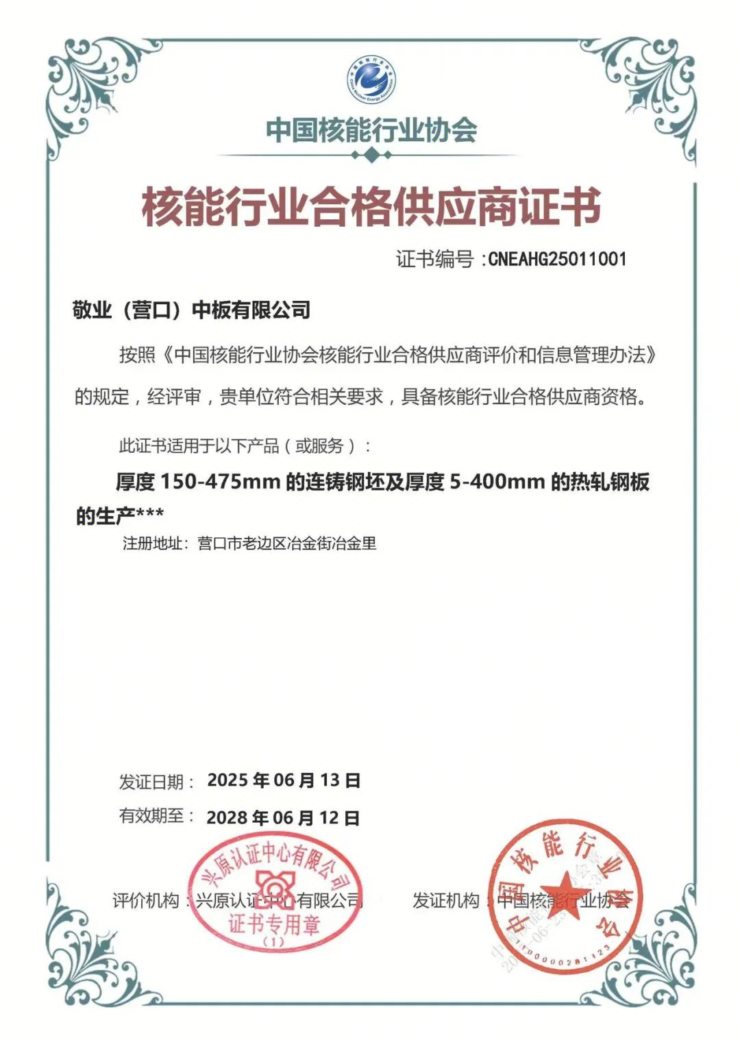 中國(guó)核能行業(yè)協(xié)會(huì)成立于2007年,現(xiàn)有會(huì)員單位452家,理事會(huì)成員130家,覆蓋了我國(guó)核能行業(yè)產(chǎn)業(yè)鏈的各個(gè)領(lǐng)域,其中包括中核集團(tuán)、中廣核集團(tuán)、國(guó)電投、華能集團(tuán)等央企,這些企業(yè)均為國(guó)家戰(zhàn)略核力量的核心和國(guó)家核能發(fā)展與核電建設(shè)的主力軍。此次營(yíng)口中板獲認(rèn)證,意味著將深度參與國(guó)家核能產(chǎn)業(yè)建設(shè)。
