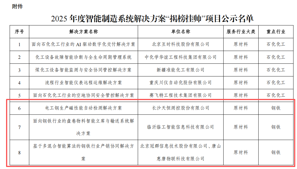 附件:2025年度智能制造系統(tǒng)解決方案“揭榜掛帥”項目公示名單