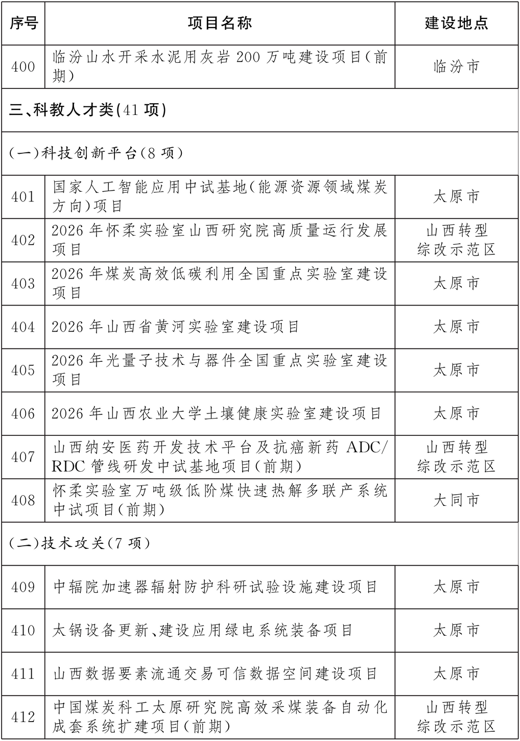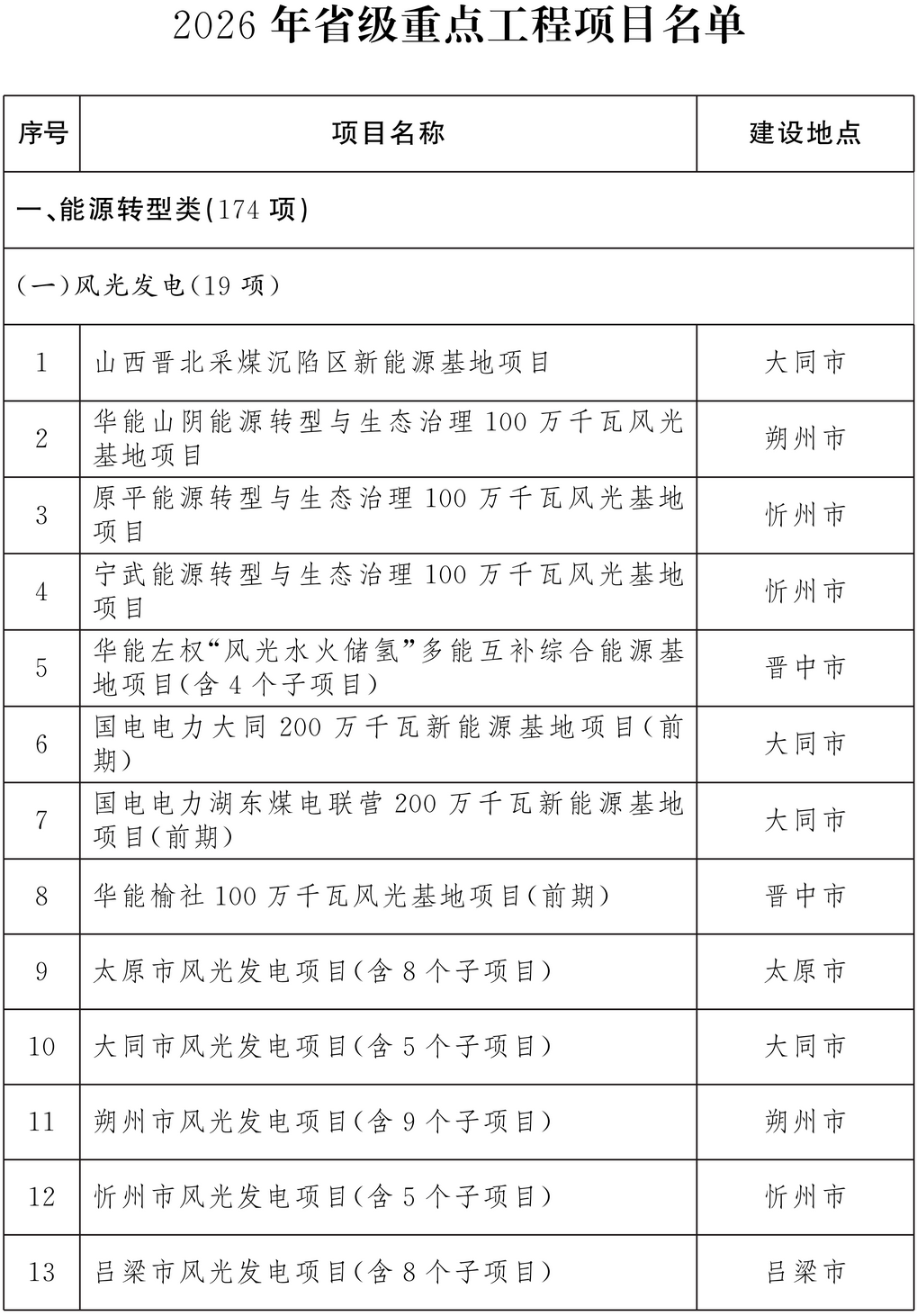 核心提示:1月5日,山西省人民政府發(fā)布2026年省級重點工程項目名單,共629個項目,其中能源轉型類項目174個、產(chǎn)業(yè)升級類項目226個、科教人