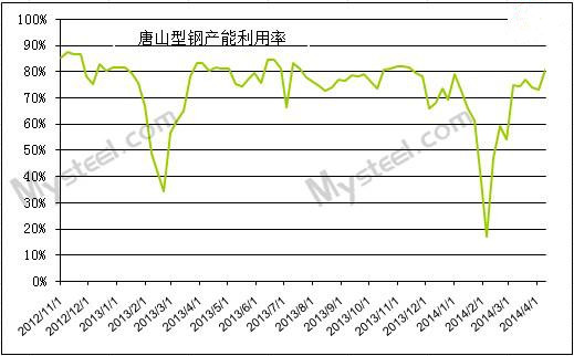 【鋼廠資源供給方面】本周唐山地區(qū)多數(shù)型鋼廠正常生產(chǎn),據(jù)不完全統(tǒng)計,本周(4.11-4-17日)唐山地區(qū)63條型鋼生產(chǎn)線,其中44條產(chǎn)線正常生產(chǎn),19條檢修,累計影響產(chǎn)量為12.32萬噸,產(chǎn)能利用率為80.18%,較上周下降0.56%。其中角鋼7條檢修,累計影響產(chǎn)3.69萬噸,產(chǎn)能利用率為77.18%,槽鋼9條線檢修,累計影響產(chǎn)量為5.48萬噸,產(chǎn)能利用率73.28%,工字鋼及H型鋼共3條線檢修,累計影響產(chǎn)量為3.15萬噸,產(chǎn)能利用率為87.64%。