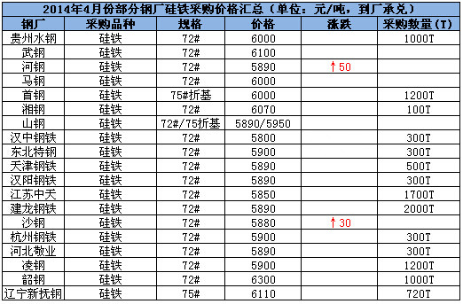 核心提示:截止于2014年6月13日,Mysteel國標硅鐵價格匯總:本周主產(chǎn)區(qū)75#硅鐵市場報價小幅上漲,且市場庫存較少。各地區(qū)報價如下:寧夏地