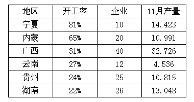 表一 12月硅錳主產(chǎn)區(qū)開(kāi)工率一覽表