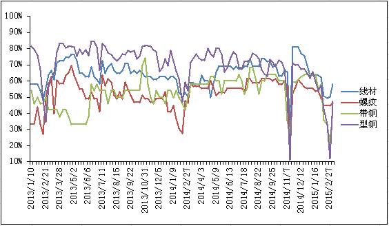 圖4 唐山地區(qū)成品材企業(yè)開工率走勢圖