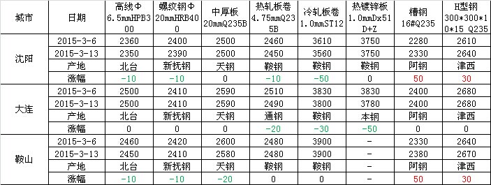 表3:遼寧省部分主導(dǎo)鋼廠調(diào)價(jià)情況匯總表(03.06-03.13)