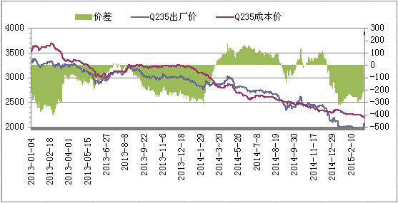 截至3月13日唐山地區(qū)鋼坯測算成本價為2201元/噸,出廠價為2050元/噸。出廠價格與測算成本之間差價-151元,近期鐵礦石價格大幅下降,鋼坯出廠價大幅回升,唐山鋼坯盈利空間雖然依然處于負(fù)值,不過較前期已有大幅改善。