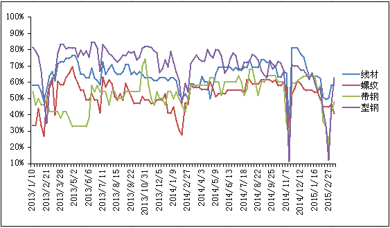 圖4 唐山地區(qū)成品材企業(yè)開工率走勢圖