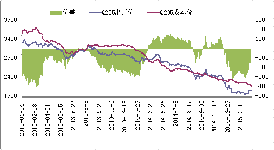 圖2 唐山鋼坯成本與市場(chǎng)價(jià)對(duì)比圖