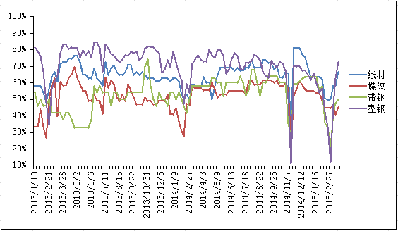圖4 唐山地區(qū)成品材企業(yè)開(kāi)工率走勢(shì)圖