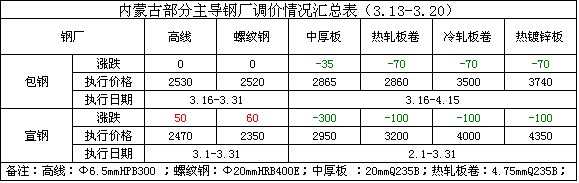 內(nèi)蒙古鋼市一周評(píng)述(3.13-3.20)