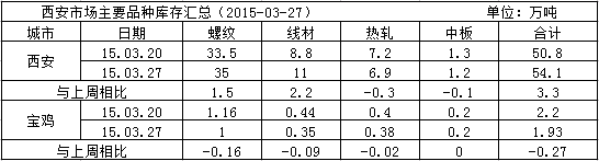 本周陜西主要市場(chǎng)各品種總體庫(kù)存互有漲跌,具體情況如下: