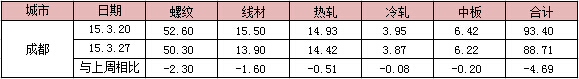 | 成都 | 2015-3-20 | 2760 | 2710 | 2680 | 2610 | 3340 | 2800 | 3240 |