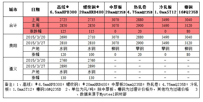 表一:本周貴州主要市場(chǎng)價(jià)格變化匯總(單位:元/噸)