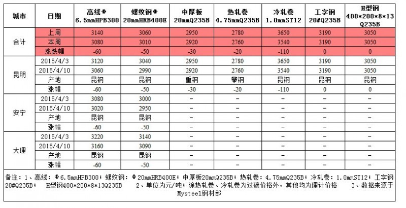 云南鋼市一周評述(4.3-4.10)