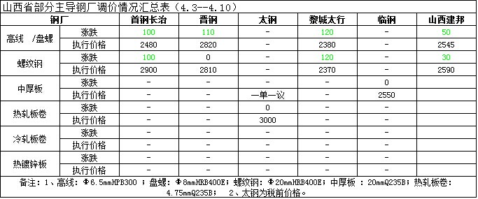 山西省鋼市一周評述(4.3-4.10)