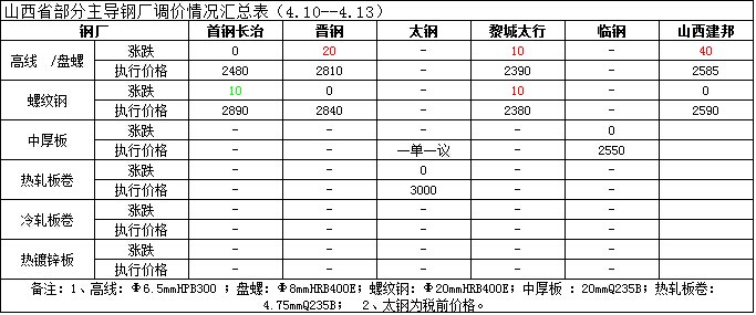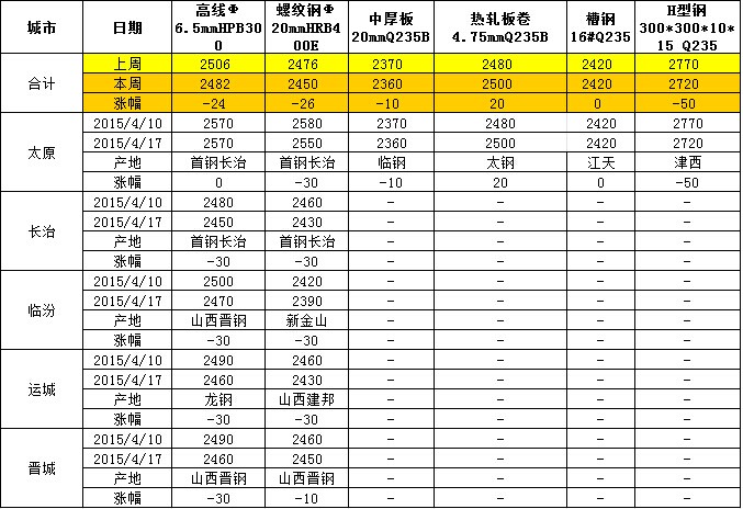 山西省鋼市一周評述(4.10-4.17)