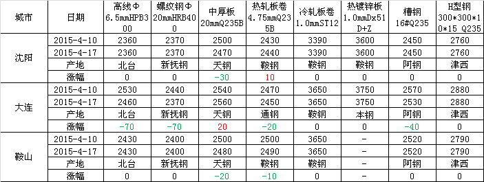 表3:遼寧省部分主導(dǎo)鋼廠調(diào)價情況匯總表(04.10-04.17)