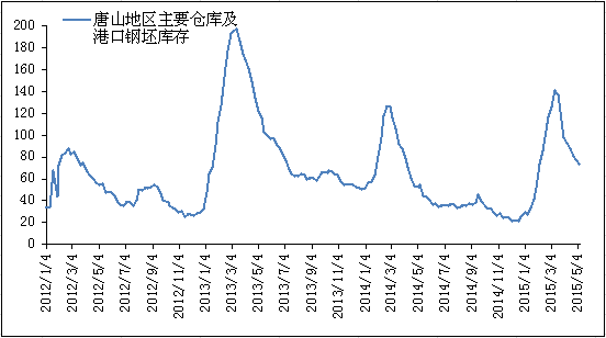 圖3 唐山地區(qū)主要倉庫及港口鋼坯庫存走勢圖