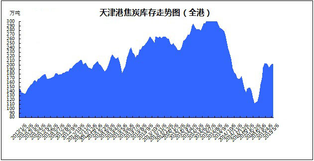 圖2:天津港焦炭庫(kù)存走勢(shì)圖
