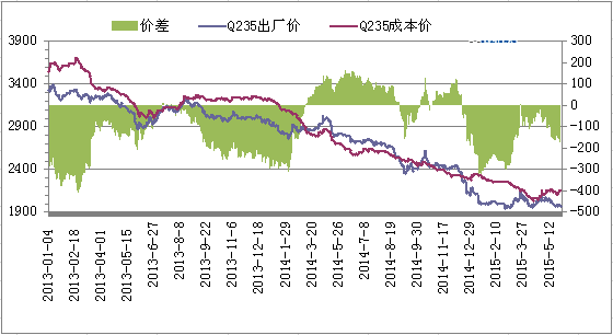 圖2 唐山鋼坯成本與市場價對比圖