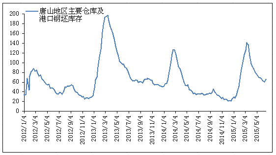 圖3唐山地區(qū)主要倉庫及港口鋼坯庫存走勢(shì)圖