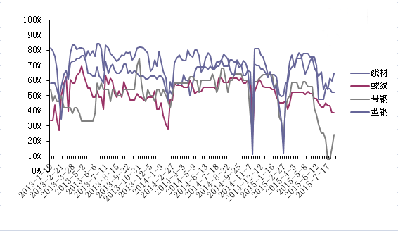 圖4唐山地區(qū)成品材企業(yè)開工率走勢圖來源:Mysteel云終端