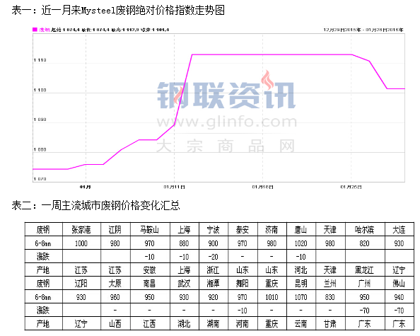 山東:本周山東廢鋼市場(chǎng)整體持穩(wěn),部分鋼廠小幅下跌,但臨近春節(jié),成交較少,整體偏平穩(wěn),市場(chǎng)處于半休市狀態(tài)。目前主流鋼廠重廢含稅價(jià)格維持在1050-1150元/噸,市場(chǎng)不含稅重廢940-980元/噸,鋼屑不含稅840-860元/噸。盡管本周資本市場(chǎng)表現(xiàn)不佳,影響現(xiàn)貨市場(chǎng)信心,鋼坯市場(chǎng)小跌,部分小鋼廠采購(gòu)價(jià)格小幅下調(diào)價(jià)格,但對(duì)市場(chǎng)無(wú)影響。短期來(lái)看,臨近春節(jié),市場(chǎng)將有價(jià)無(wú)市,價(jià)格將維持平穩(wěn)運(yùn)行。